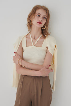 取り外しも可能な長めのホルターネックストラップはチョーカーっぽく巻きつけたり首元で結んだり、気分に合わせて自在にアレンジを楽しめます。