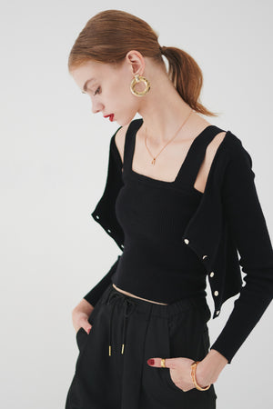 今季発売から大好評の『シルエットがとにかく綺麗』にこだわった、毎日でも着たいカーディガン&シンプルながらスタイリングのアクセントになる大人かわいい艶っぽホルターキャミトップスをアンサンブルセットに♡