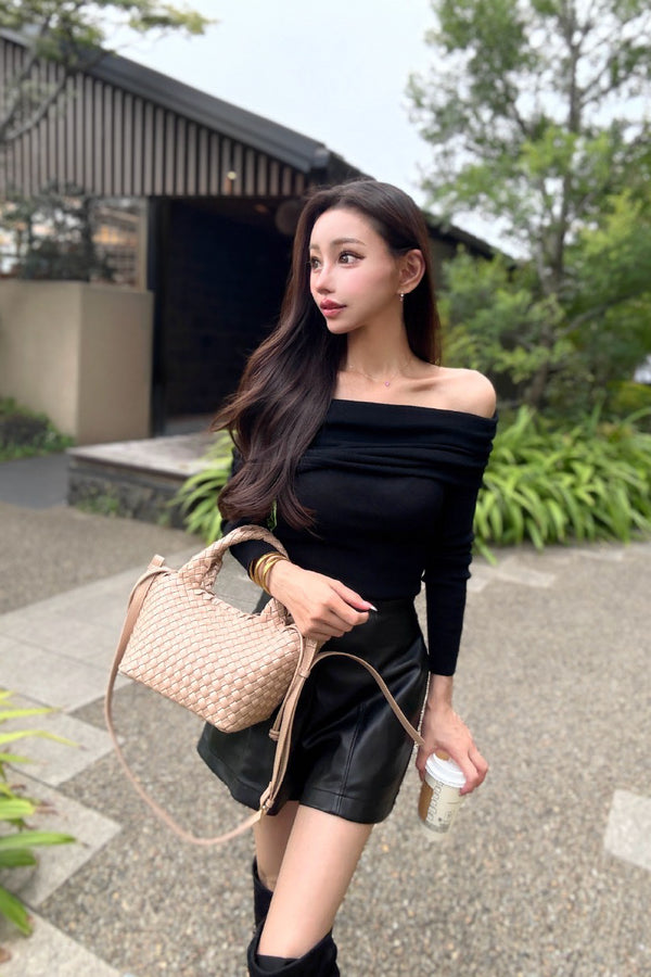 オフショルダーニットトップス
