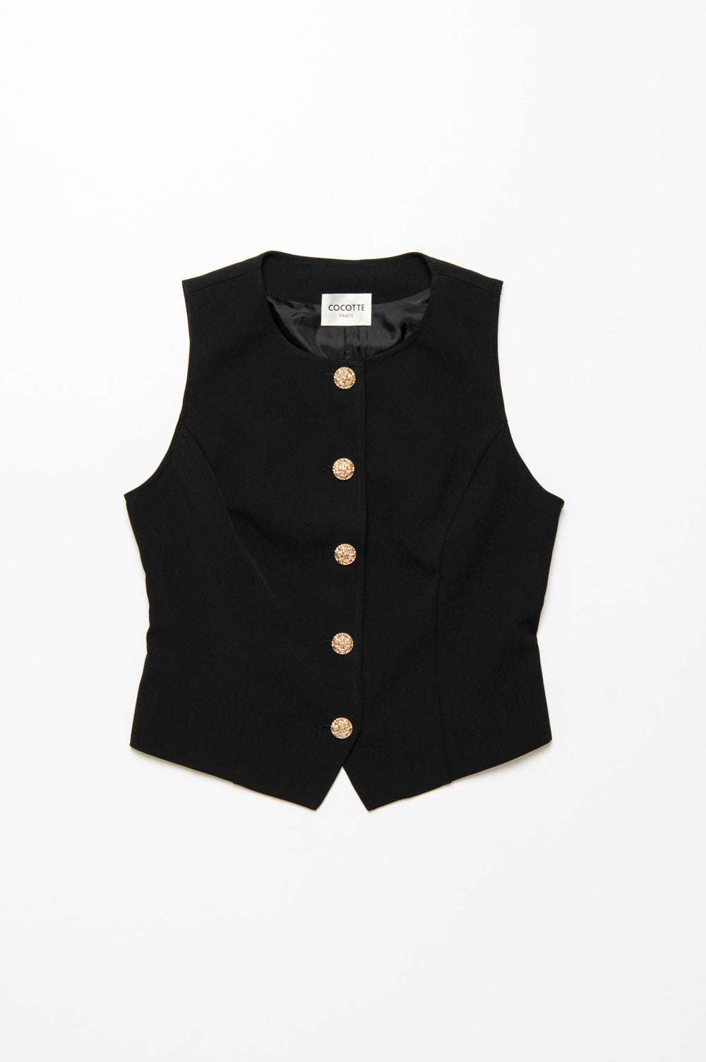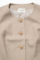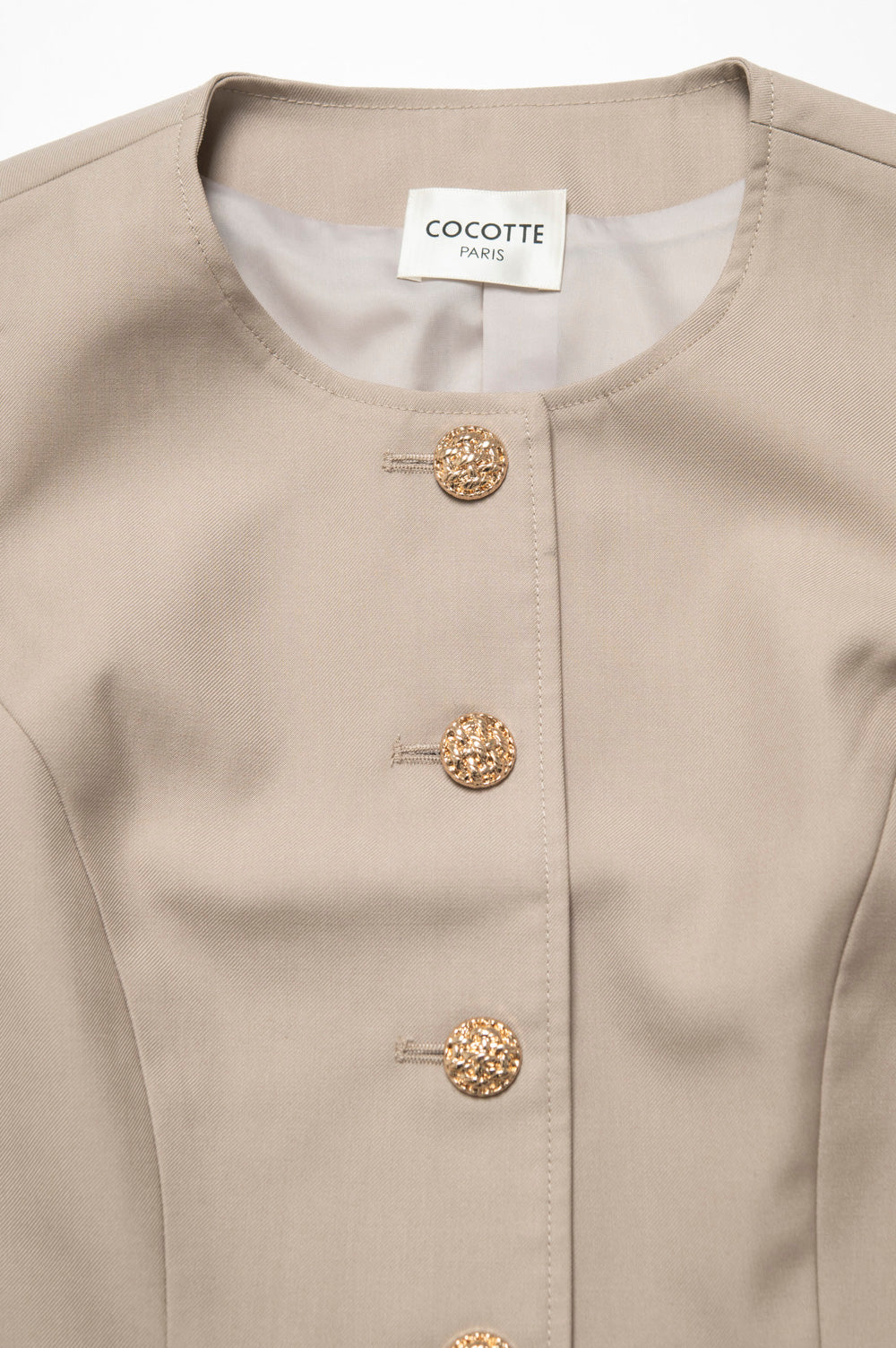 「すっきりとしたシルエットが魅力の、ノーカラージレ」
