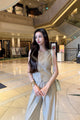 ウエストに沿った立体的な切替が、女性らしいラインを引き立てます。