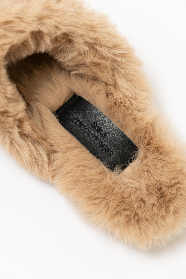フワッと柔らかいフェイクファーは足をソフトに包んでくれます。