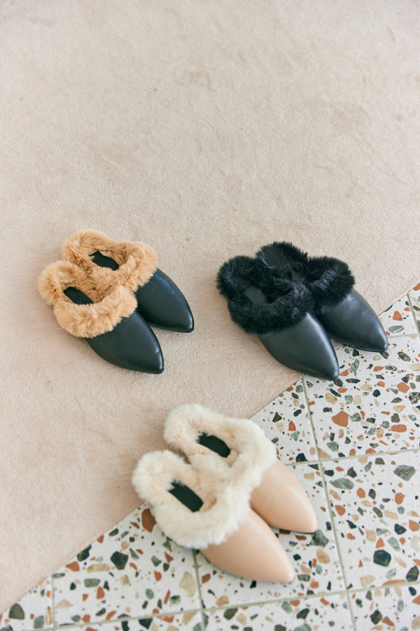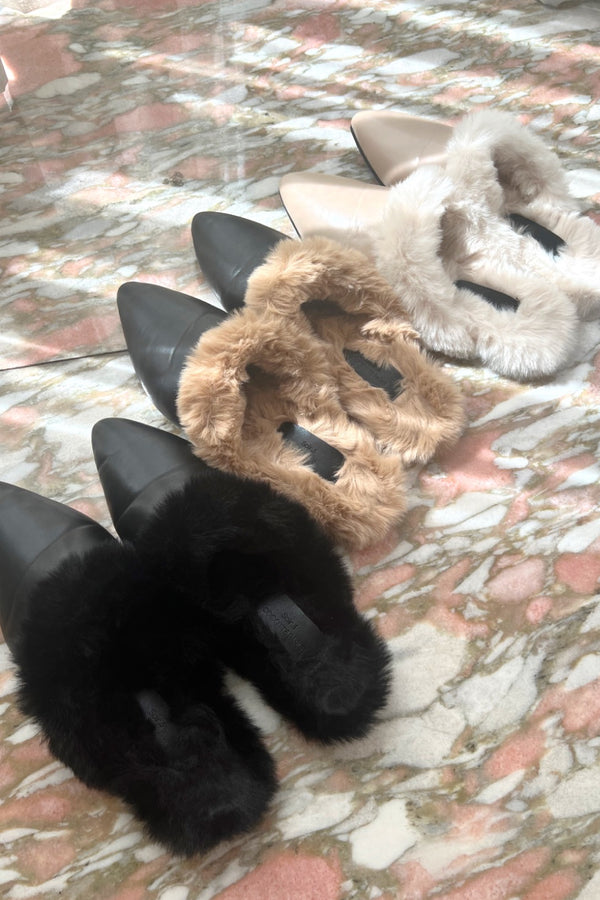 フラットミュール ファーサンダル