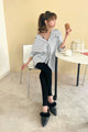 デニムなどのカジュアルなスタイリングと合わせると垢抜けた印象に。
