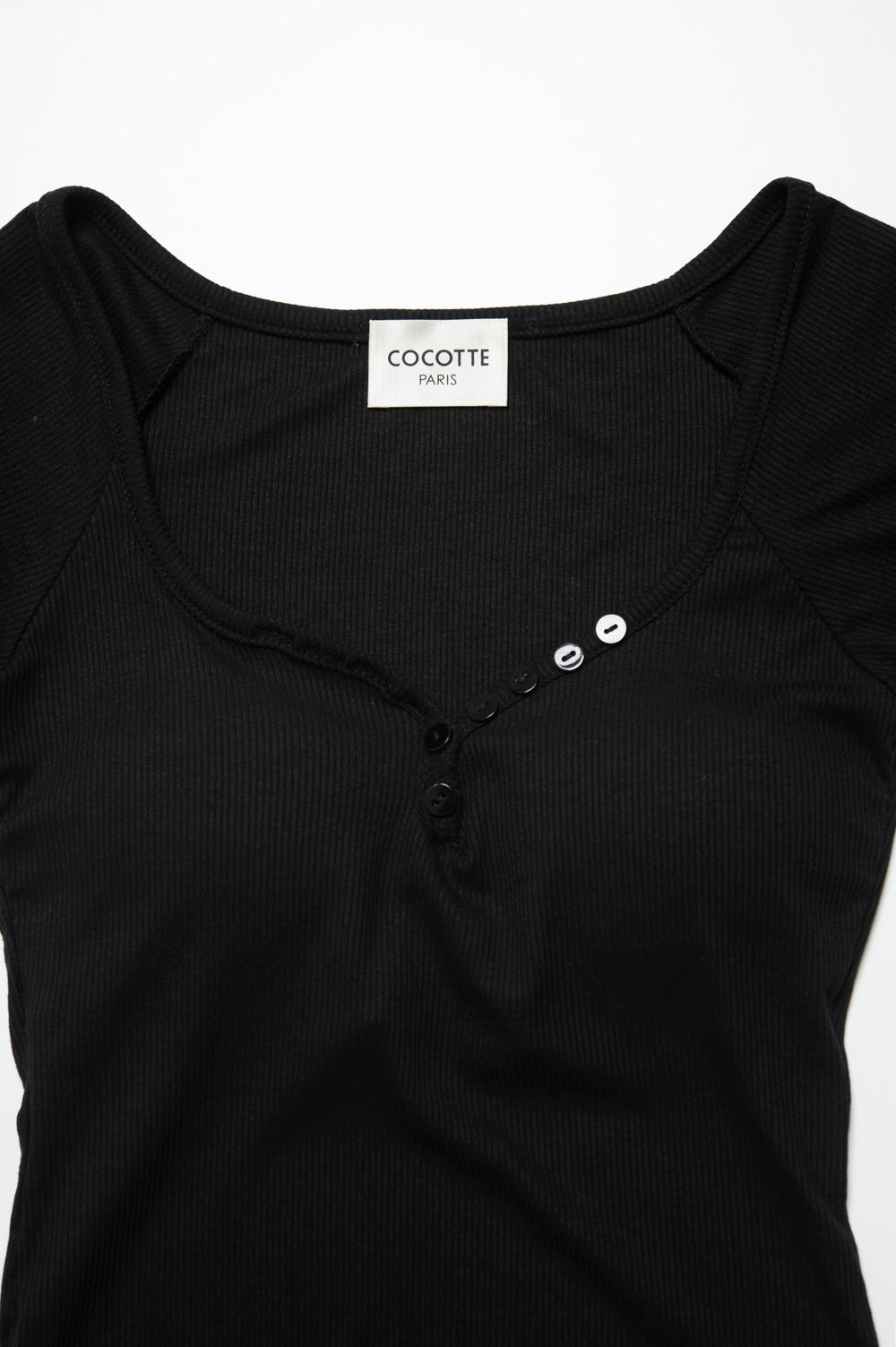 リブヘンリーネックカップ付きトップス
