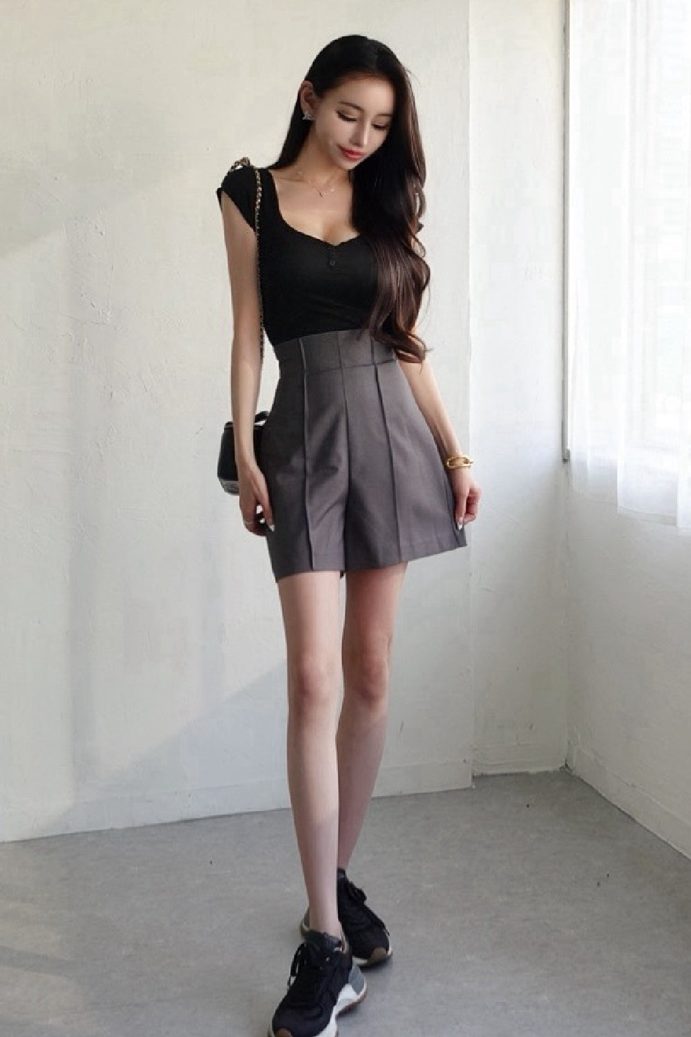 コンパクトなシルエットが、女性らしいラインを引き立てます。