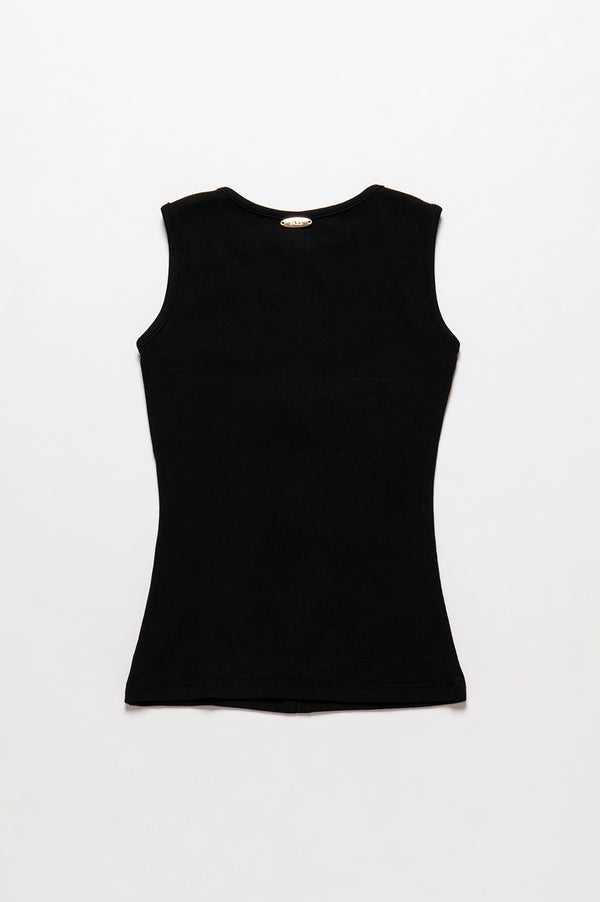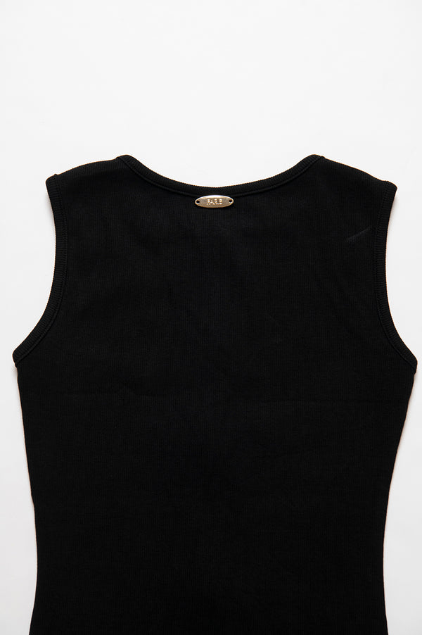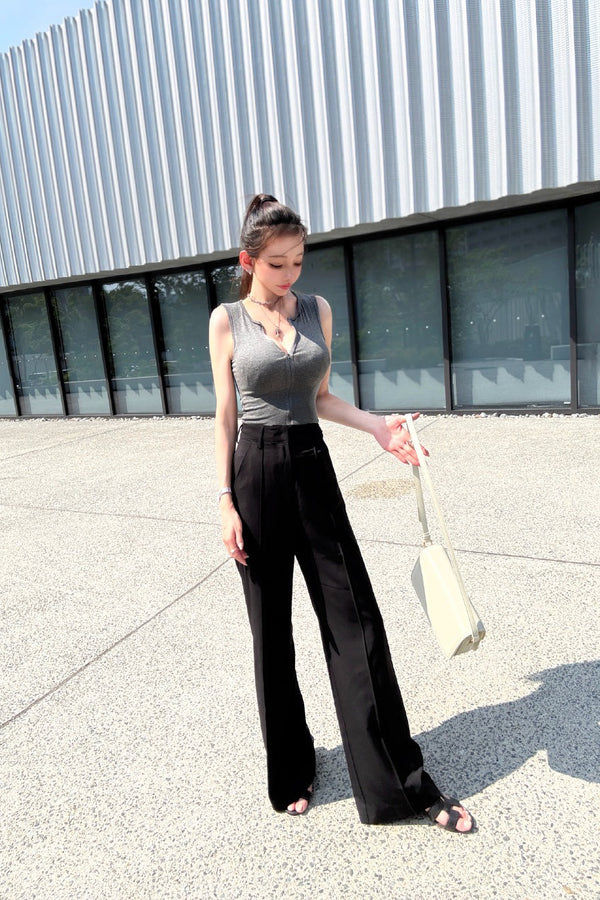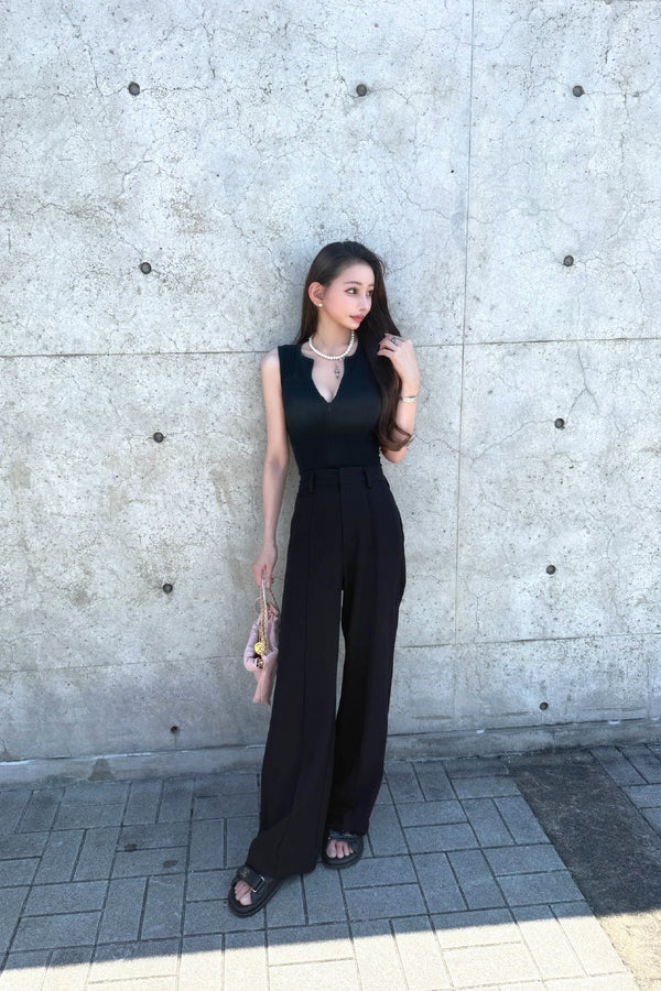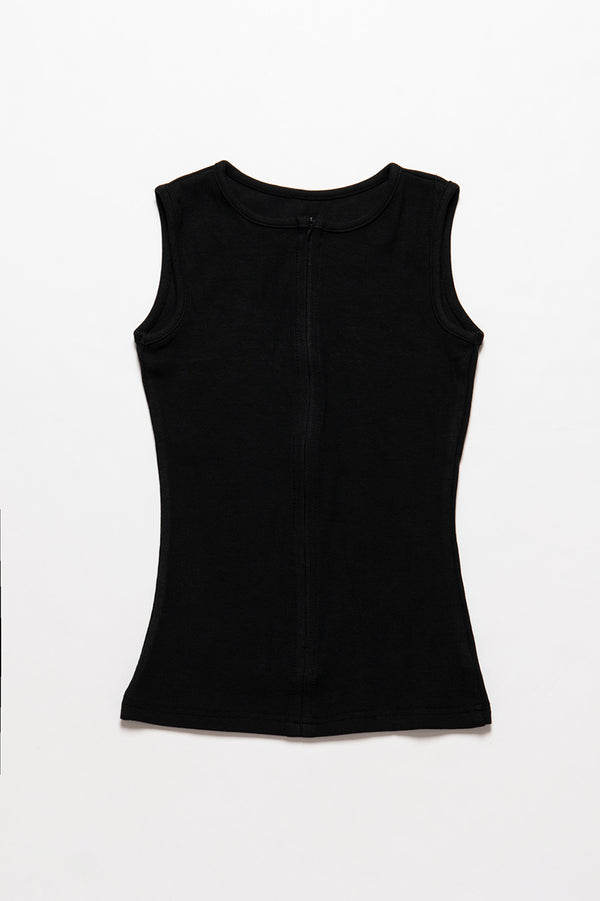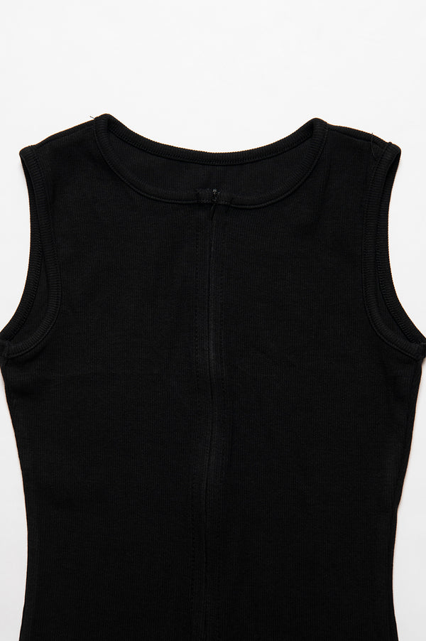 フロントジップのバランスで着こなしバリエーションが広がる、デイリーユースしやすいシンプルなタンクトップ。