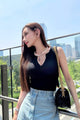 程よい厚みの生地は、しっかりフィットしつつもインナーのラインやボディラインを拾いにくいので品よくメリハリがある綺麗シルエットのスタイリングが完成します♡