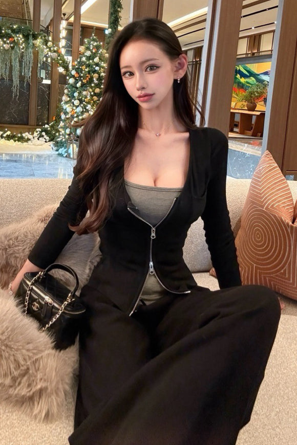 ダブルジップレイヤードスタイルトップス