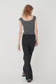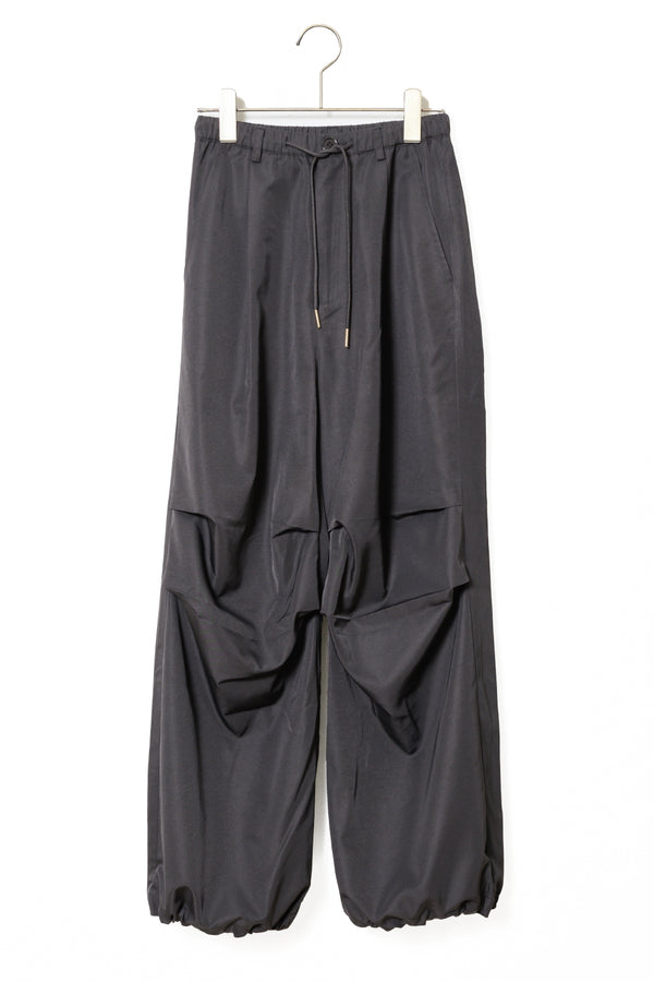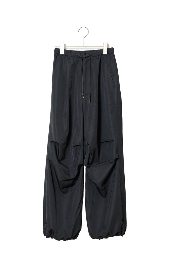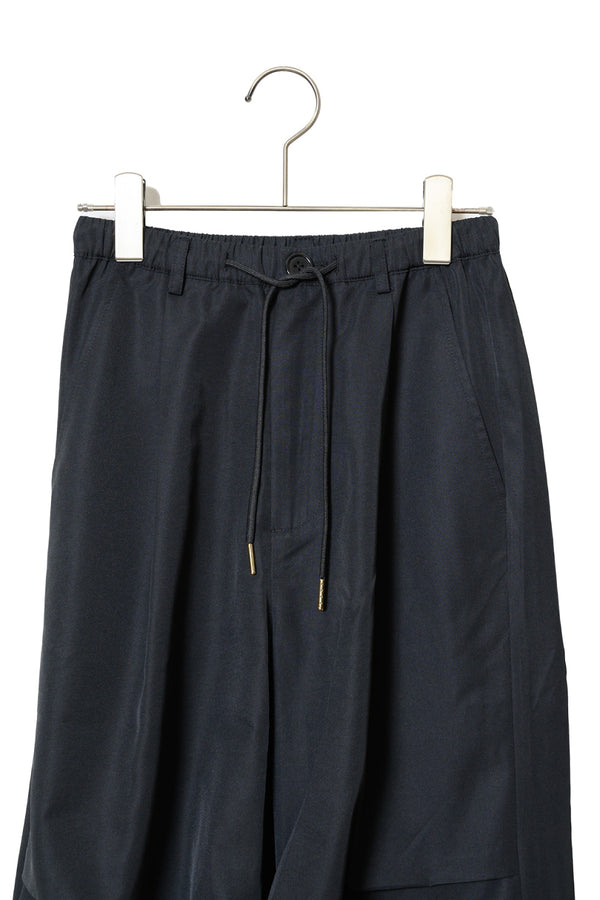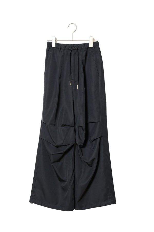 膝周りはタックで程よくドレープを付けた立体的な仕様で、落ち感のあるとろみ生地でもバランスの良いボリューム感が完成。