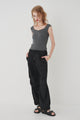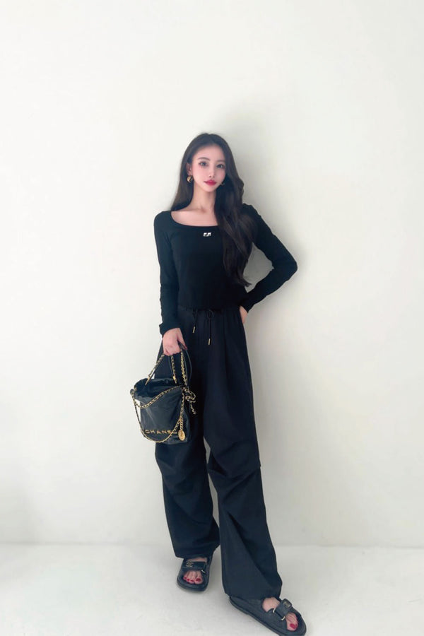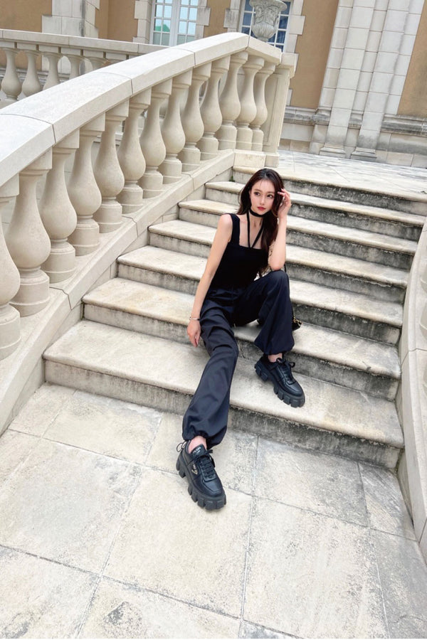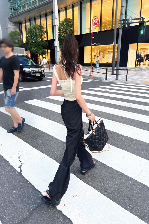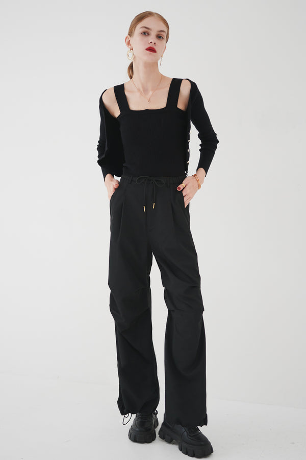 裾のドロストの絞り方でシルエットを変えられるのでスニーカーやサンダルはもちろん、ヒールのあるシューズともバランス良いコーディネートが叶います。