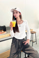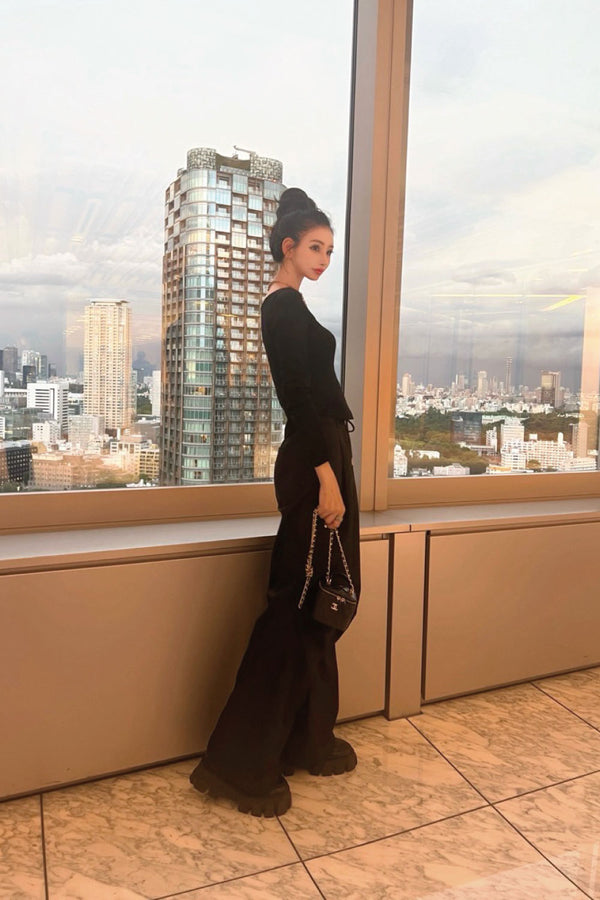 コンパクトなトップスと合わせたトレンドムードな着こなしがおすすめです♡