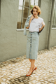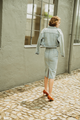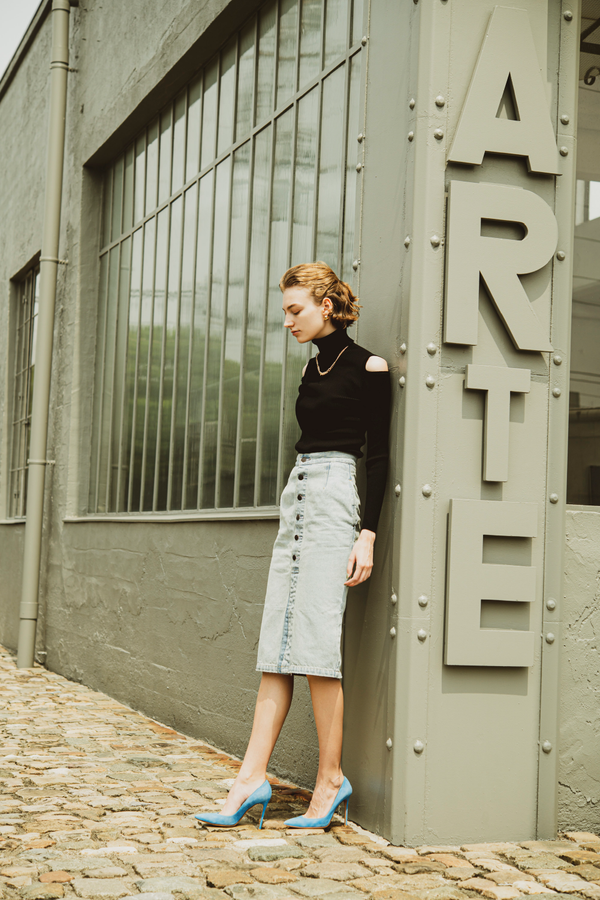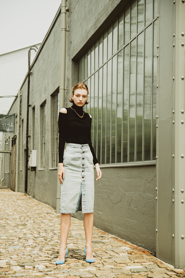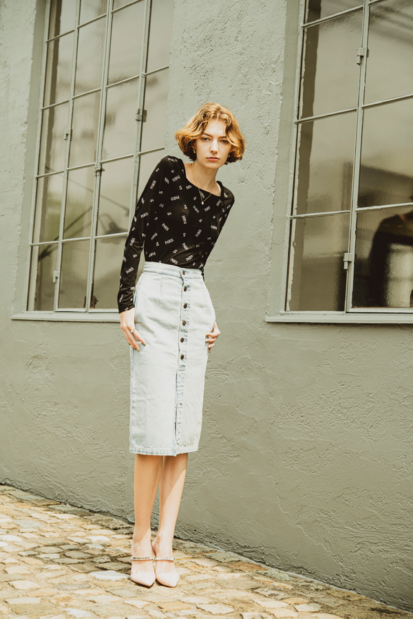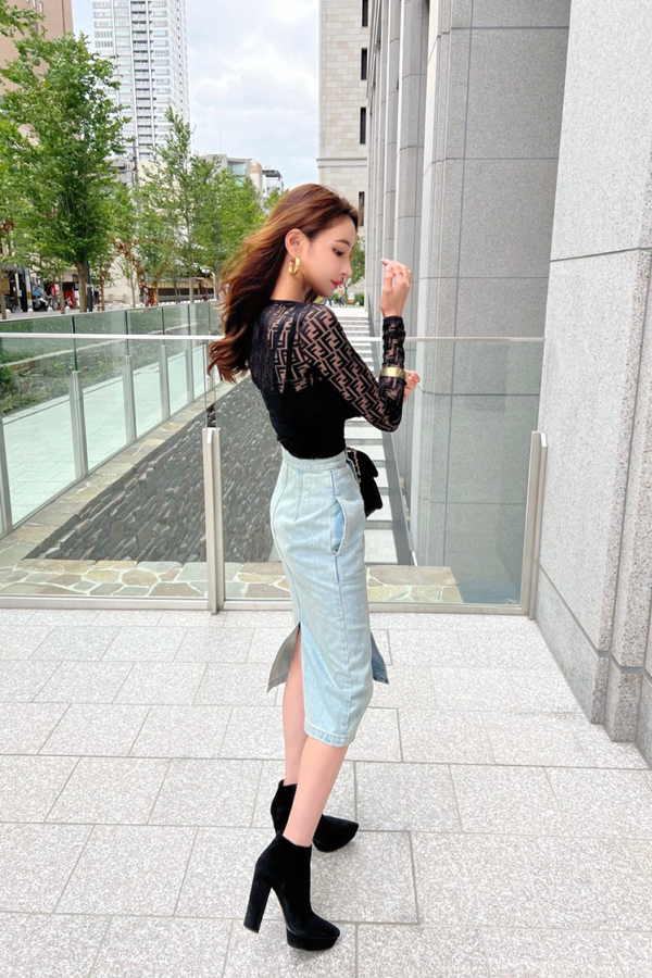 すっきりとしたボディラインを演出するペンシルシルエットです。