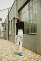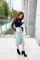 足元にロングブーツを合わせることでトレンド感のある着こなしが完成します。