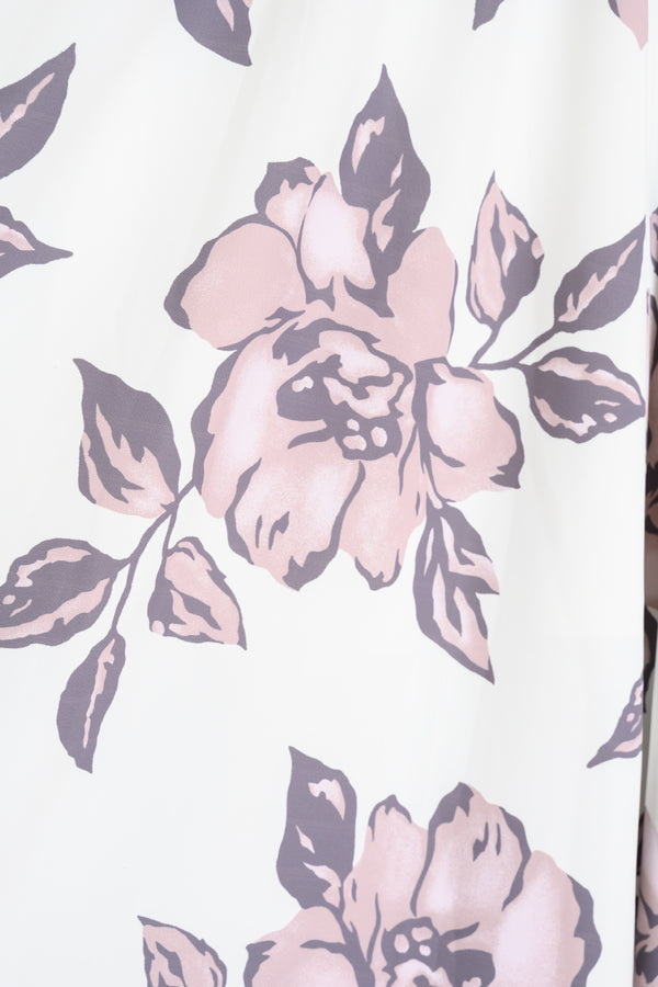 インパクトあるフラワープリントは、Whiteは優しいくすみカラーでほどよい甘さのバランスに、Blackは重たくならないよう明るめカラーで上品な華やかさにまとめています。