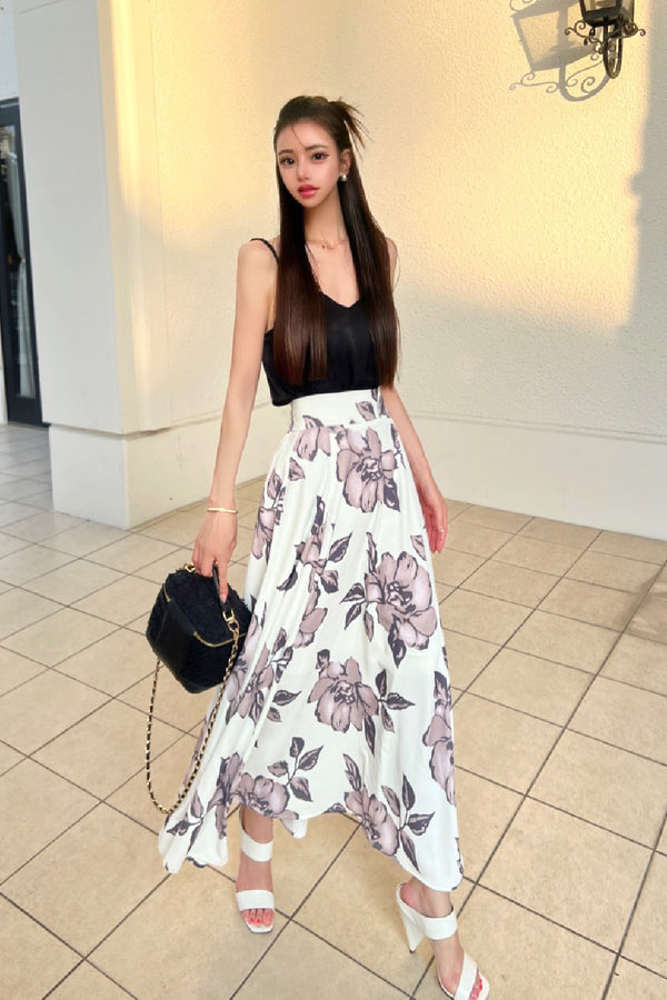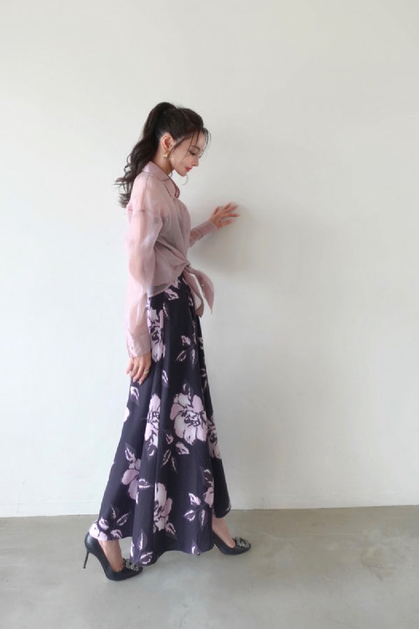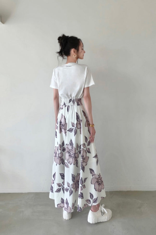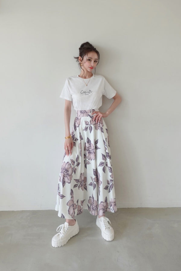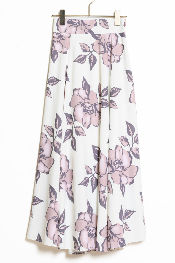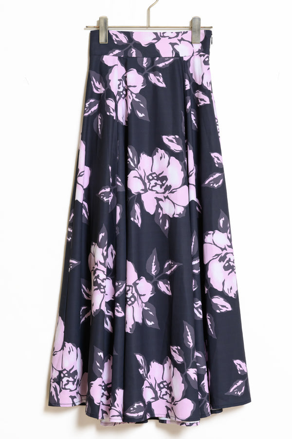華やかな大柄のフラワープリントが目を惹くフレアスカート。
