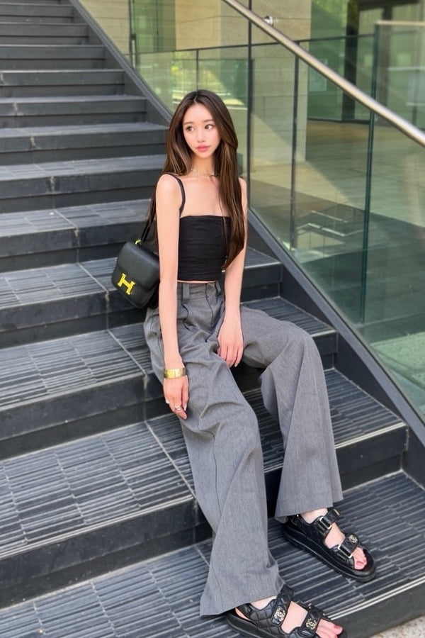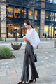 Tシャツやタンクトップなどあえてカジュアルなトップスと合わせてもこなれ感が◎