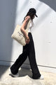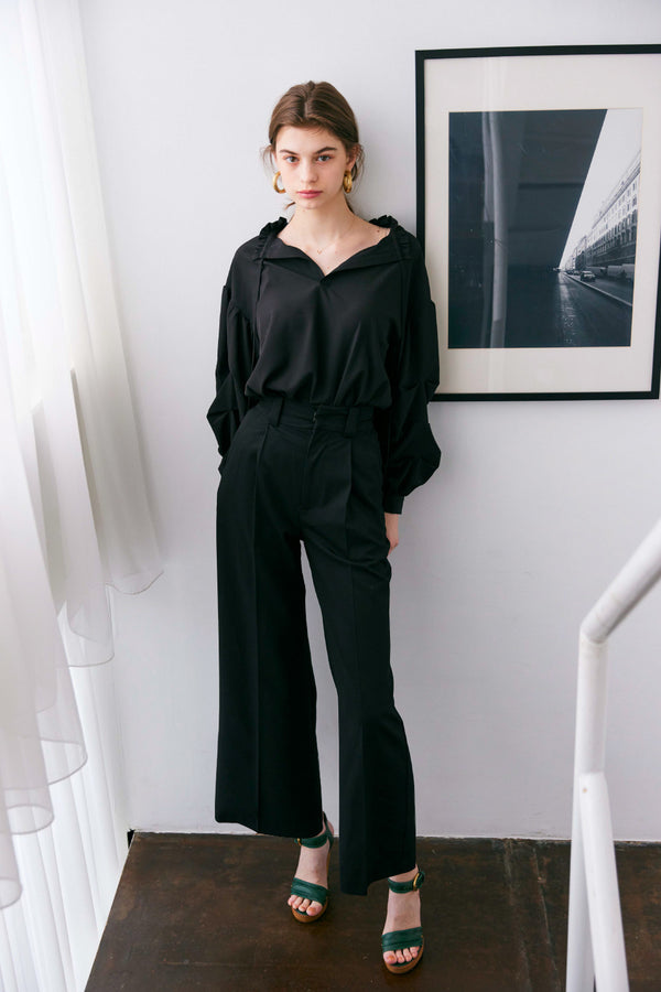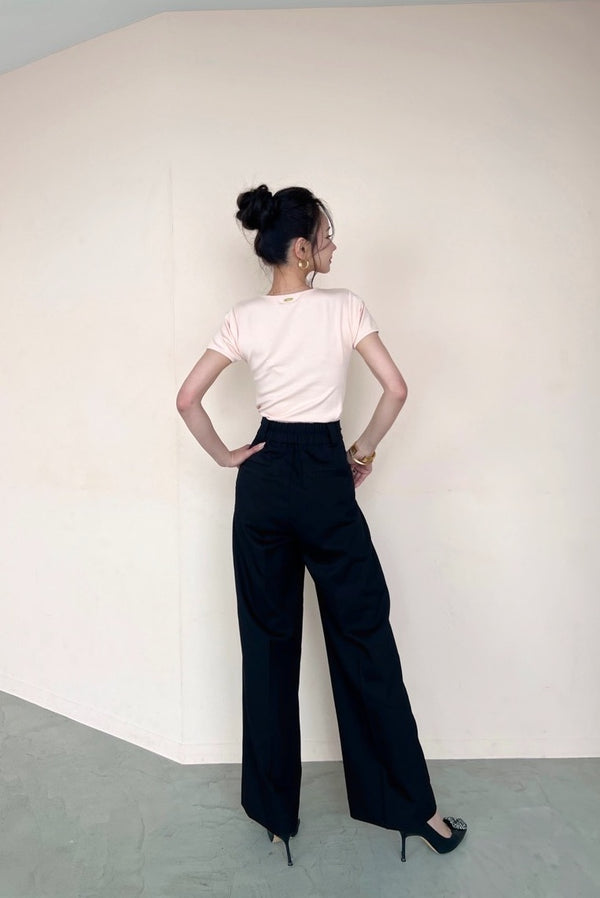 このパンツを履けばハイウエストで脚長&美しいシルエットで美脚が叶う。