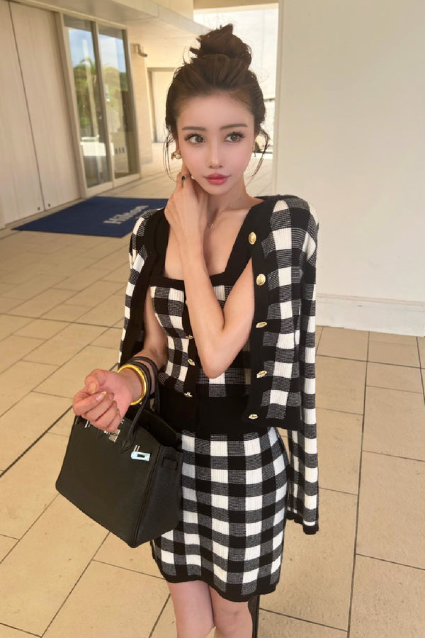 同柄のカーディガンやキャミソールを合わせたアンサンブルのコーディネートがオススメです。