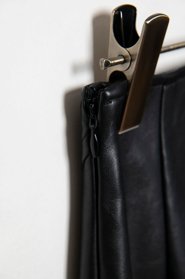 厚みのある上質な素材感と立体的なタックが程よいフィット感とメリハリのあるラインを描くタイトスカート。