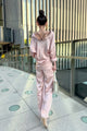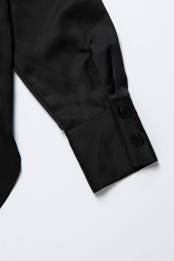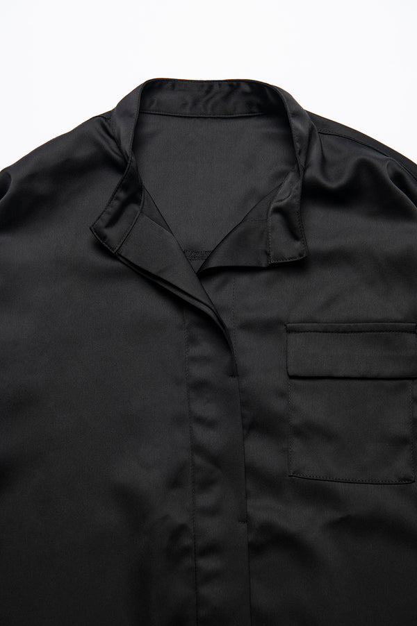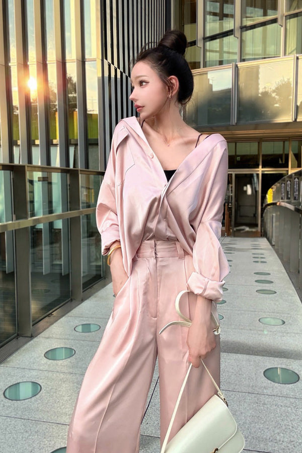 極上の肌触りで心地よく纏う艶感サテンシャツとサテンパンツのセットアップ。