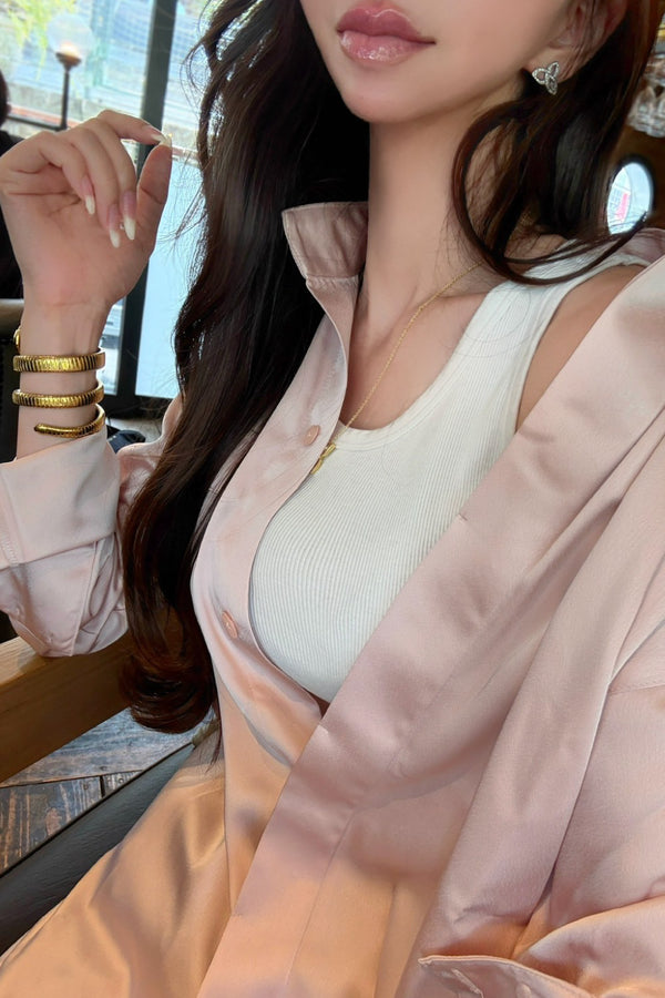 サテンの落ち感ある極上のとろみとルーズなシルエットが艶っぽくてこなれた抜け感ある着こなしを作ります♡