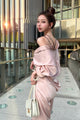 シルエットやインナーラインを拾い過ぎない肉厚サテンが品よくシルエットを綺麗に魅せるポイント。