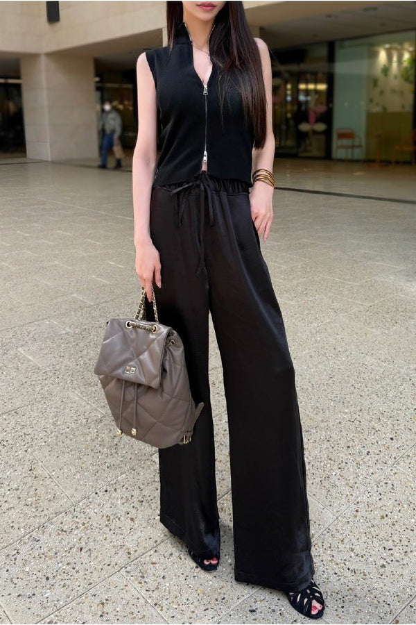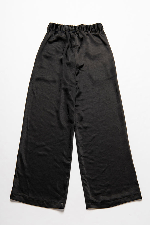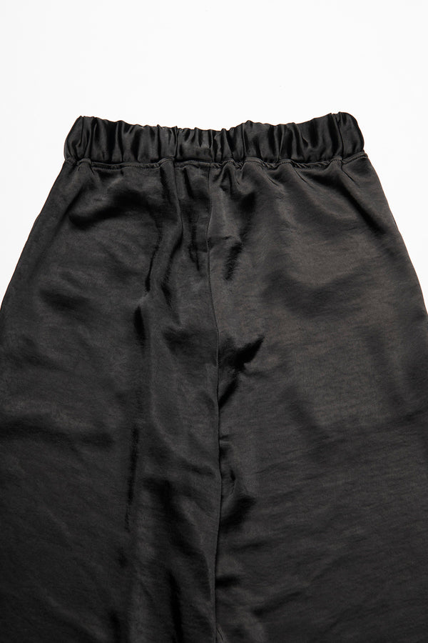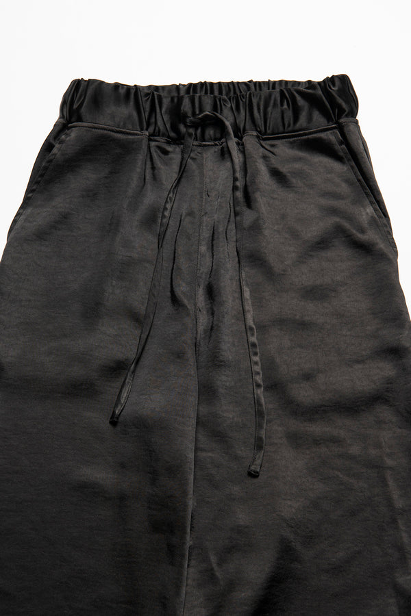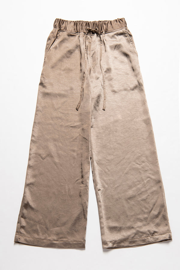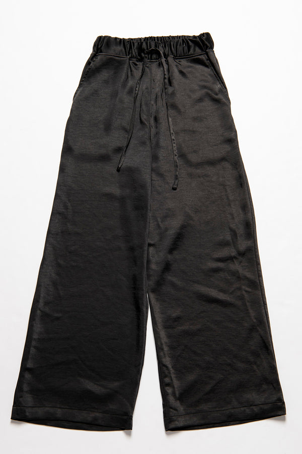 リラクシーな着心地が嬉しいカジュアルボトムを、しなやかで艶っぽいサテン生地がluxeに格上げ♡