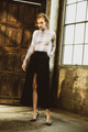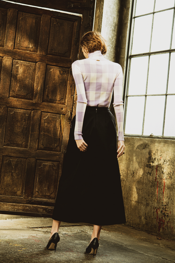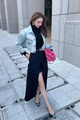 深めのスリットが入っているのでタイトでも足さばきがよく、歩きやすいデザインです。