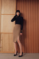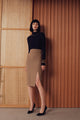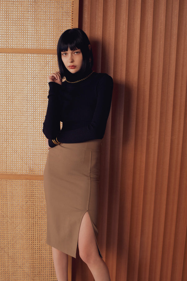 スタイルアップ効果抜群でスリットがポイントのタイトスカート。