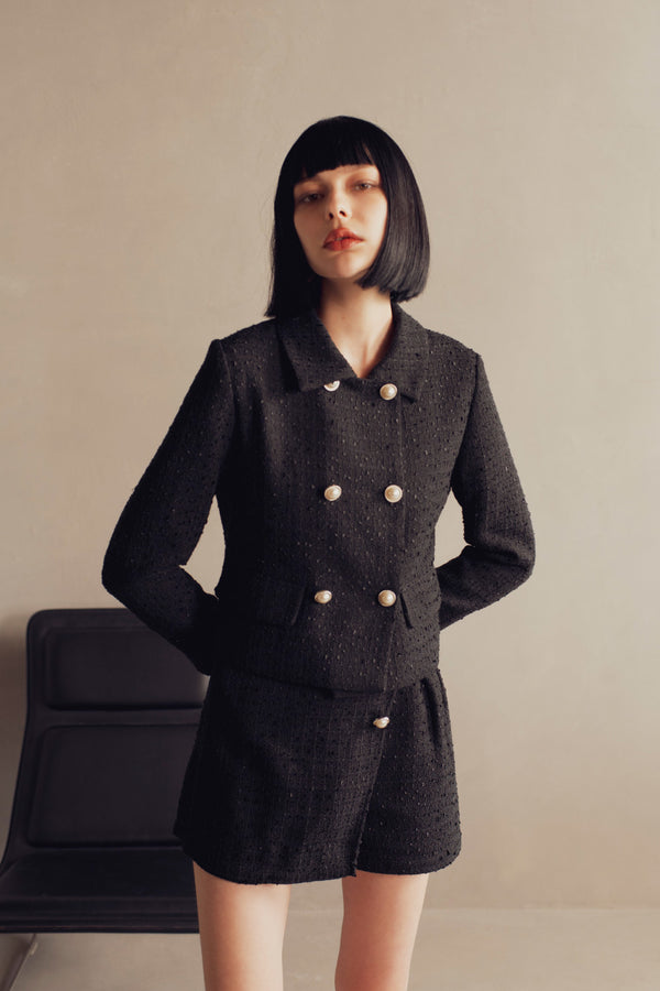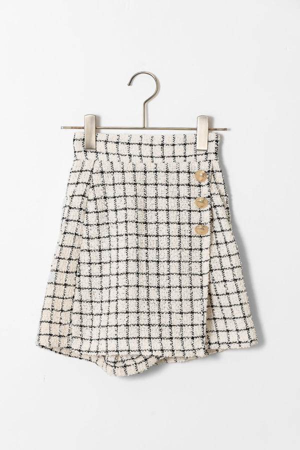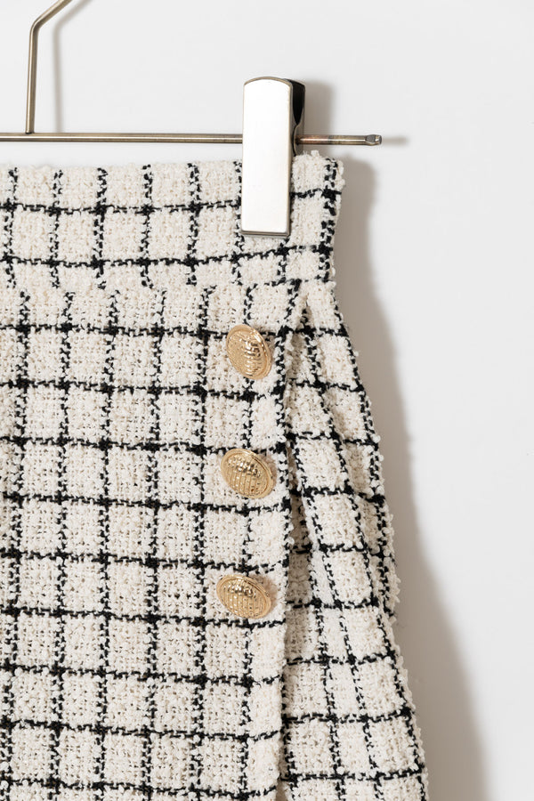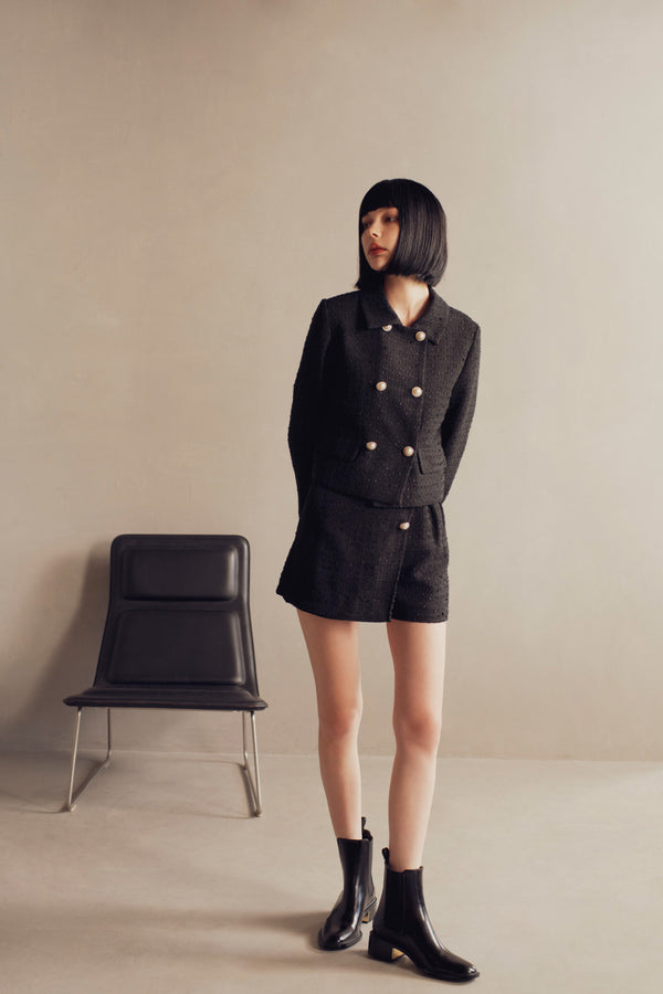 上品な雰囲気のツイード素材でショートパンツを大人可愛く仕上げました。