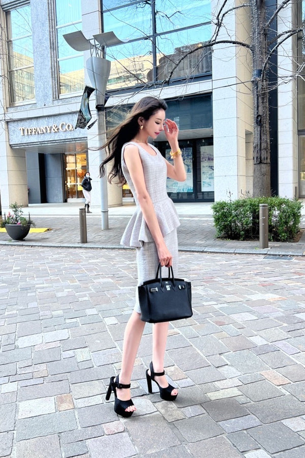 後ろの裾にはスリットが入っており、ヘルシーなアクセントに♪ 足捌きも◎