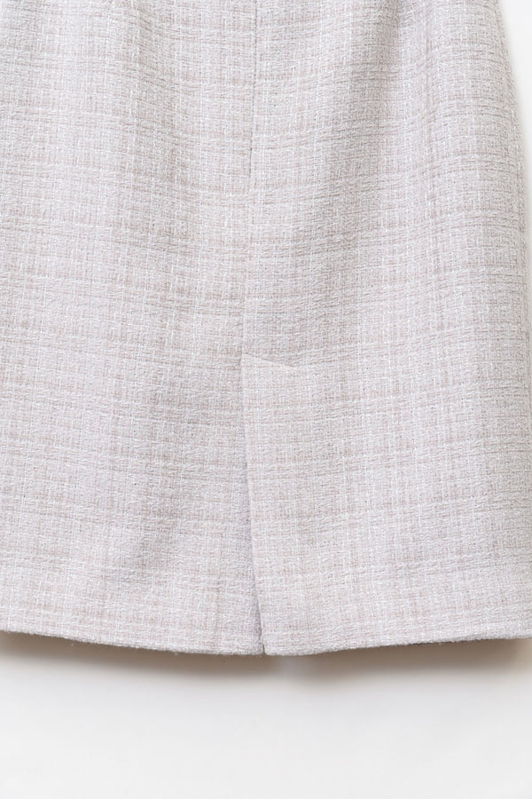 ヒップからストンと落ちるようなシルエットで短過ぎない丈が大人のバランスに。