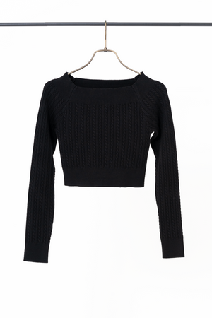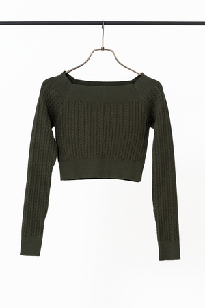 フィット感のあるシルエットで、ケーブルでも可愛くなりすぎないデザインにしています。