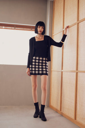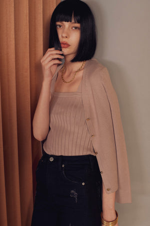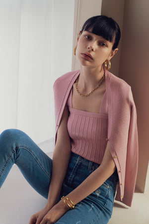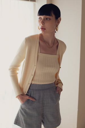 リブニットながらハリ感のある素材なのでもたつかず、身体のラインをきれいに拾ってくれます。