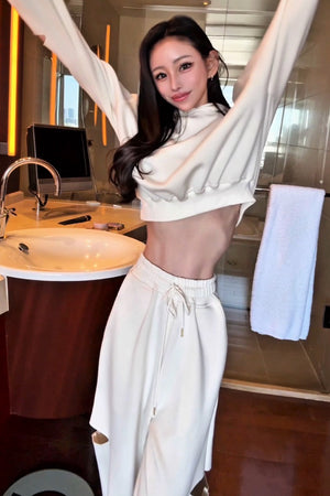 同素材のスリットスウェットパンツとのluxeなスポーティースタイルはもちろん、フーディートップスとしてもスタイリングしやすいシンプルデザイン。