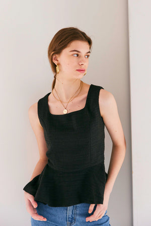 裾に向かって広がるふわっとしたペプラムデザインが大人可愛いポイントに。
