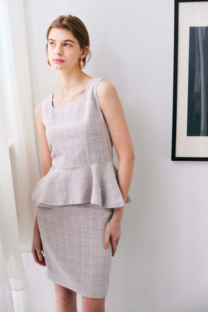 ツイードペプラムトップス