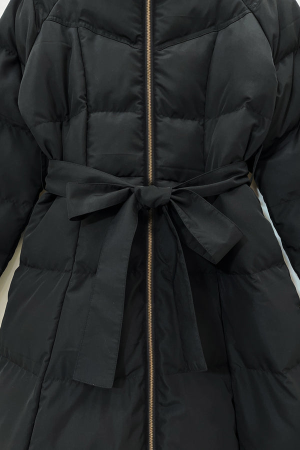 付属のリボンをきゅっと締めればより着膨れを抑え、メリハリのあるシルエットになります。
