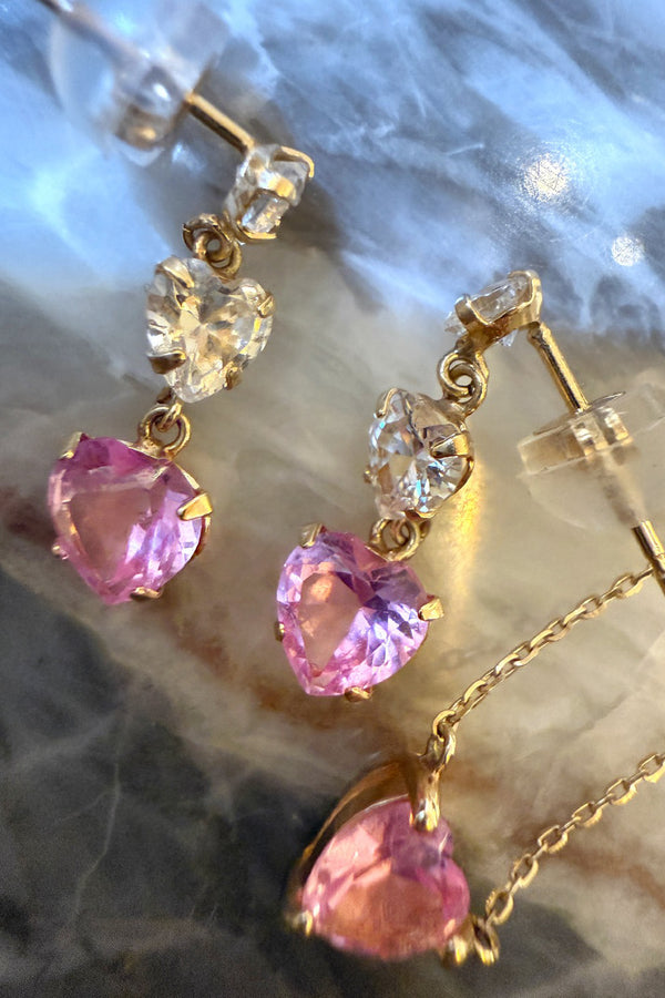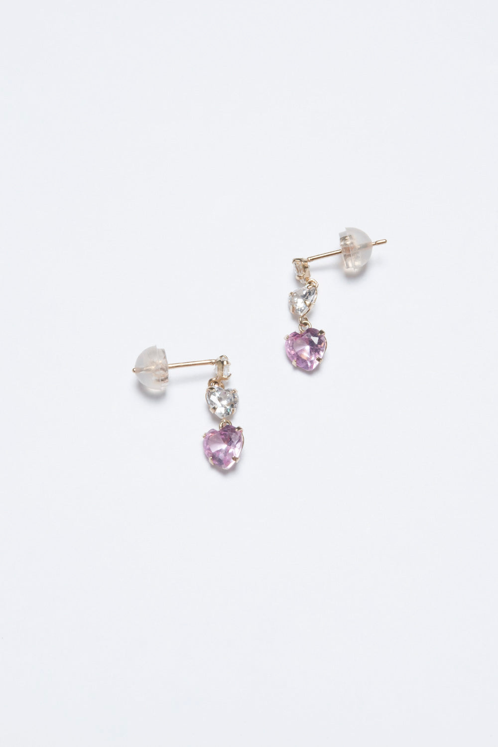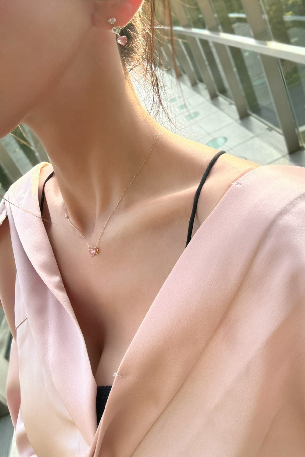 「耳元の小さなハートが大人の可愛らしさを演出するピアス」