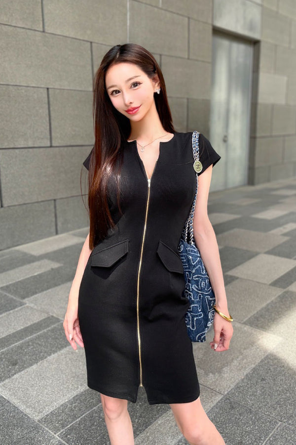 好みのネックラインが作れるフロントのフルジップデザインが、上品なシンプルワンピをこなれた印象に仕上げます。